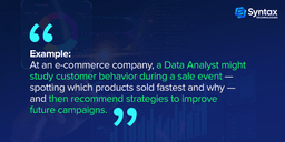 - Data Analysts help organizations understand their performance and make better decisions.